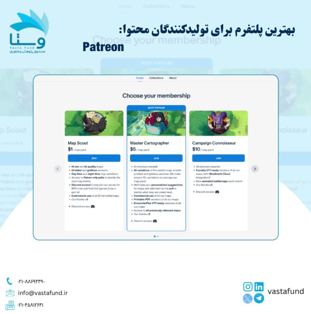 یک پلتفرم تامین مالی جمعی است که به تولیدکنندگان محتوا مثل پادکستسازان، موسیقیدانان و بازیسازان کمک میکند تا از طریق حمایت مستمر طرفداران خود به صورت پرداخت ماهانه یا پرداخت به ازای هر اثر، درآمد داشته باشند.
